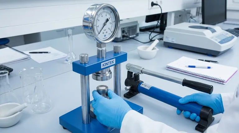 油圧プレスは、粉末状の材料(しばしば臭化カリウム(KBr)のような透明な媒体と混合される)を、薄く均一なペレットに圧縮するために使用されます。目的は最大力ではなく、一貫性と光学的透明性です。