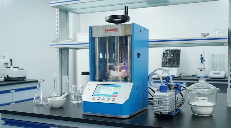 KINTEKの信頼性の高いラボプレス機で、完璧なFTIRペレット調製を実現しましょう!当社の自動ラボプレス、等方圧プレス、加熱式ラボプレスは、精密な真空制御を提供するように設計されており、空気や水分の干渉がない高密度で透明なペレットを保証します。正確な分光分析に焦点を当てる研究室に最適で、KINTEKの機器はサンプルの完全性とデータの信頼性を高めます。調製エラーによって結果が損なわれることがないように、今すぐお問い合わせください。お客様のラボのニーズに最適なソリューションを見つけます!
